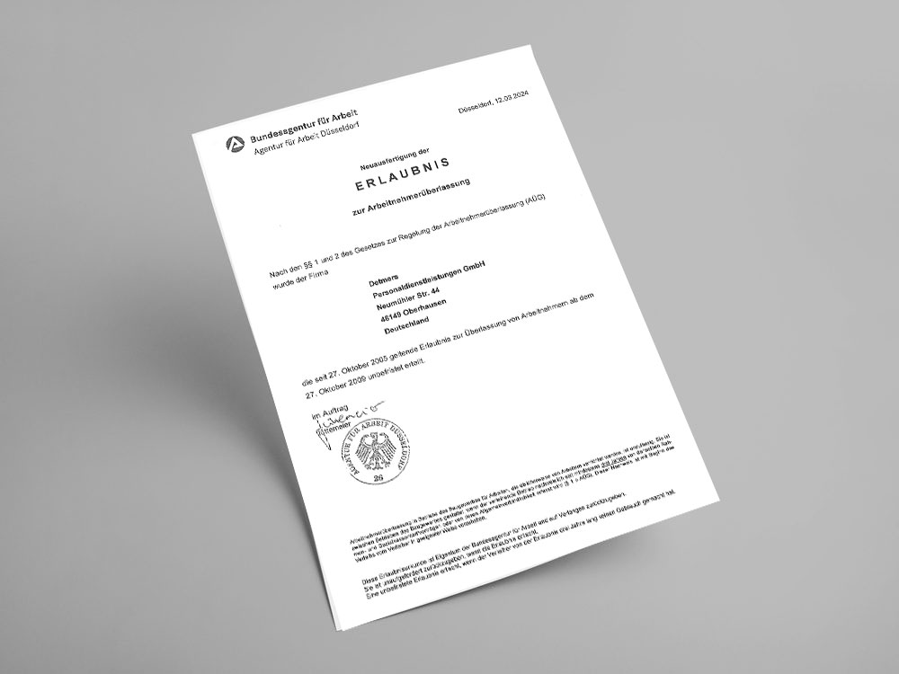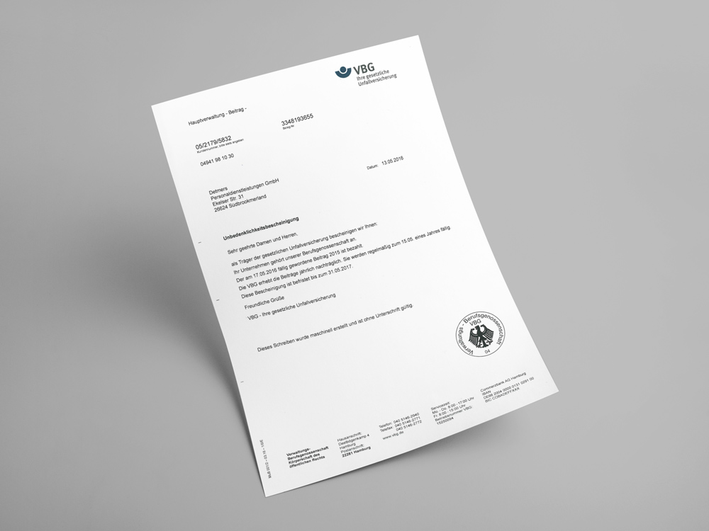 Monatliche personenbezogene Unbedenklichkeitsbescheinigung (Muster)